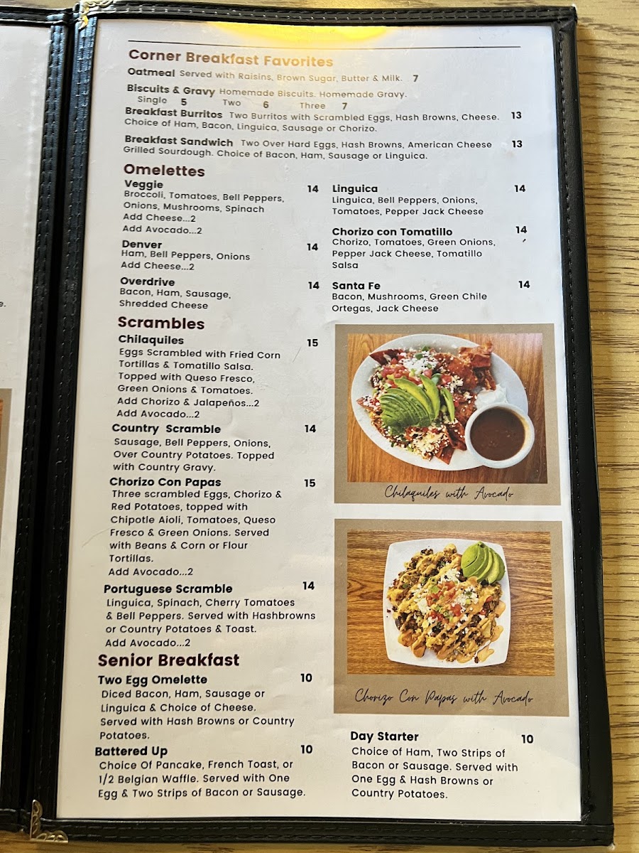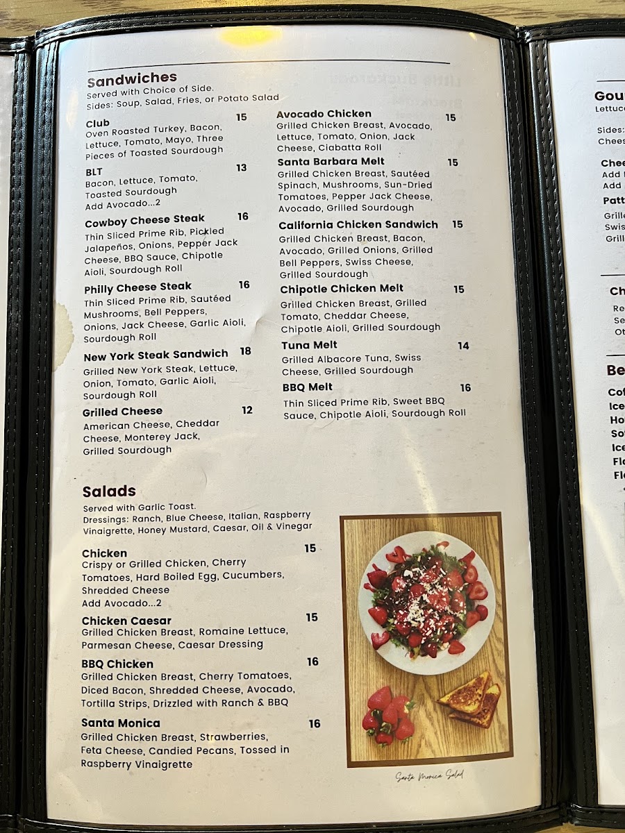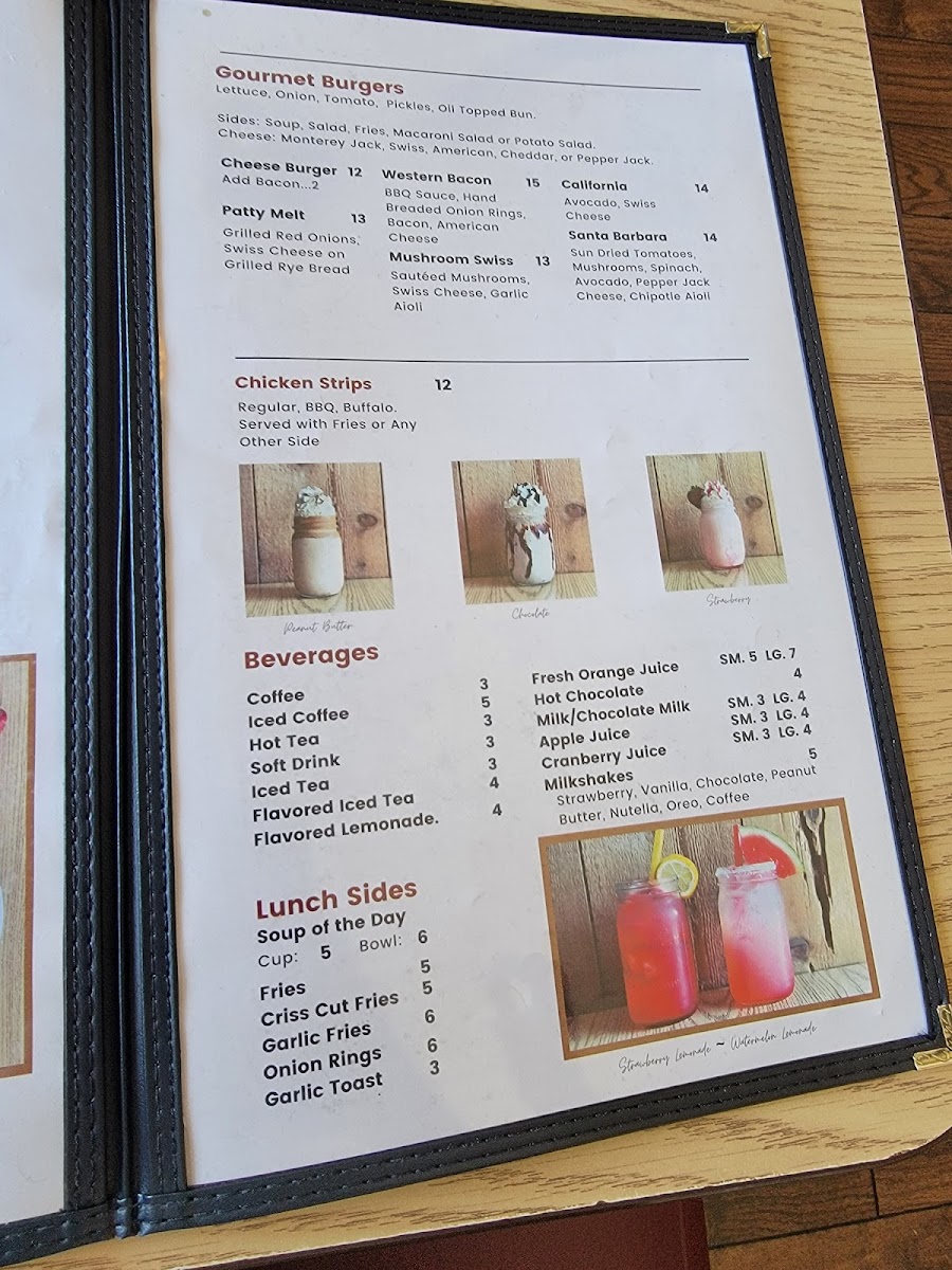 Typical offerings include breakfast standouts like biscuits and gravy, sweet cream stuffed French toast, and savory options such as chicken fried steak paired with scrambled eggs. For those looking for something lighter or fresh, dishes like the Santa Fe omelette and chicken Caesar salad provide a balanced alternative. Sweet finishes come in the form of buttermilk pancakes, banana fosters French toast, or a classic Belgian waffle, all pairing well with refreshing drinks like iced tea or strawberry lemonade.